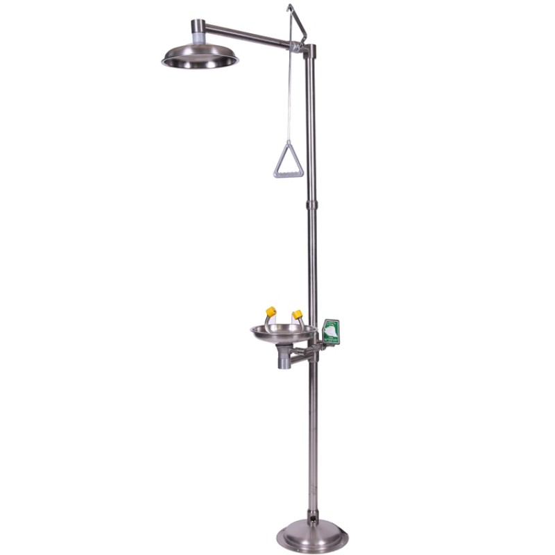 Standartlara göre 15 dakika boyunca acil duş için dakikada 75,7 l göz/yüz yıkama çeşmesi için dakikada 11,4 l kesintisiz su akışını sağlamak zorundadır ve bunu da bir su şebekesine bağlanarak karşılar. Opsiyonel olarak duş sistem ve parçaları değişik materyallerde üretilebilir.
