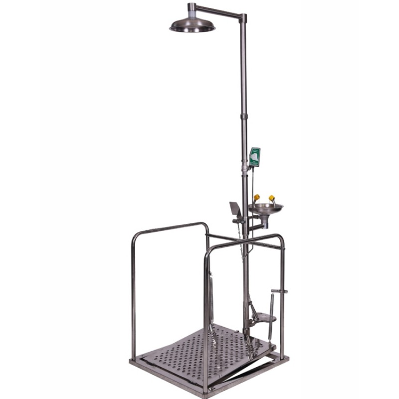 Standartlara göre 15 dakika boyunca acil duş için dakikada 75,7 l göz/yüz yıkama çeşmesi için dakikada 11,4 l kesintisiz su akışını sağlamak zorundadır ve bunu da bir su şebekesine bağlanarak karşılar. Opsiyonel olarak duş sistem ve parçaları değişik materyallerde üretilebilir.